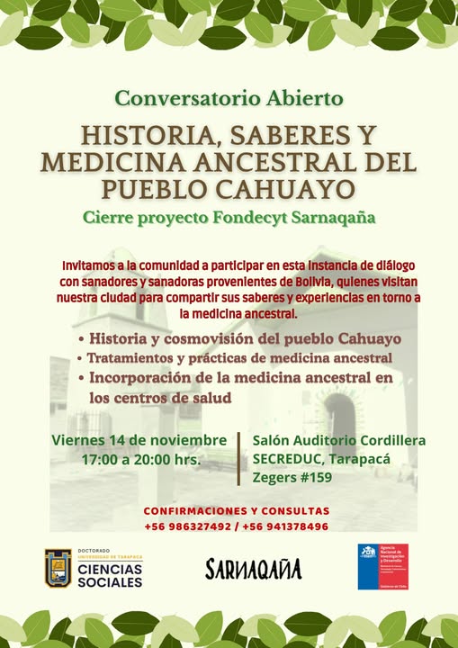 Invitamos a la comunidad a participar en un encuentro de diálogo con sanadores y sanadoras de Bolivia, quienes visitan nuestra ciudad para compartir sus saberes y experiencias sobre medicina ancestral andina 🌱